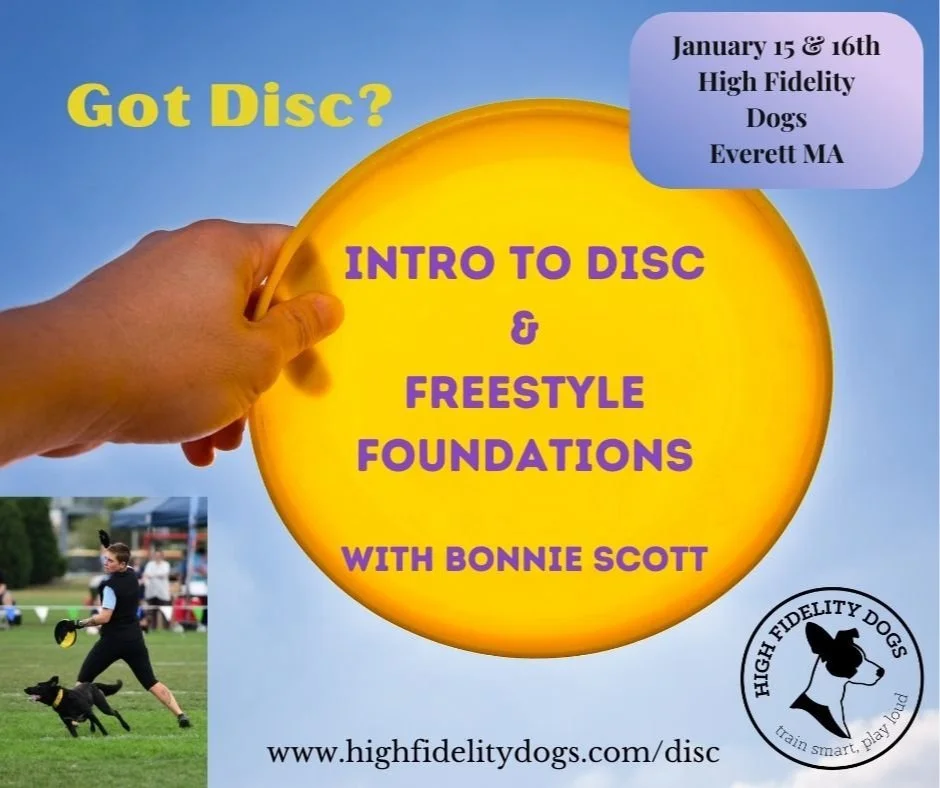 High Fidelity Dogs is hosting Bonnie Scott, Disc Dog multi-world finalist in Freestyle and Extreme Distance, on January 15th and 16th. Come join us for a fun two days! Cost is $100 per session.
